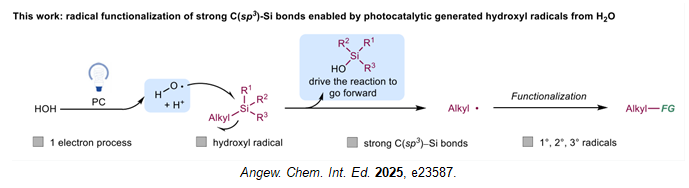 武漢大學沈曉團隊報道了一種利用羥基自由基激活強 C (sp3)-Si 鍵的光催化策略,解決了未活化有機硅試劑反應性低的難題。有機硅試劑穩定性高、易于儲存,但強 C (sp3)-Si 鍵的選擇性轉化一直是合成化學中的挑戰。研究發現,水在光催化劑作用下生成的羥基自由基,可有效引發 C (sp3)-Si 鍵均裂,產生一級、二級和三級烷基自由基,甚至能激活惰性的四乙基硅烷。該反應能實現未活化烷基硅烷與缺電子烯烴的自由基烷基化,還可用于硅雜環的自由基雙官能化,合成以往難以獲得的有機硅化合物。反應體系兼容性優異,能耐受醚、氰基、烯烴等多種官能團,適用于復雜分子的后期官能化。